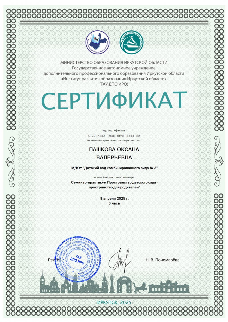 Персональный сайт воспитателя МДОУ № 3 Пашковой Оксаны Валерьевны город Свирск